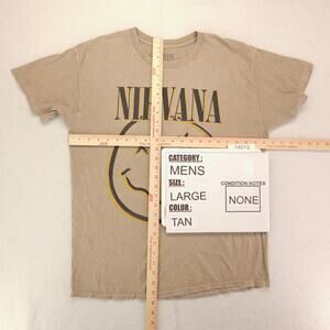 Nirvana Band Casual Crew Neck Graphic T-Shirt Adult Mens Size Large L Tan