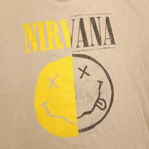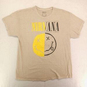 Nirvana Band Casual Crew Neck Graphic T-Shirt Adult Mens Size Large L Tan