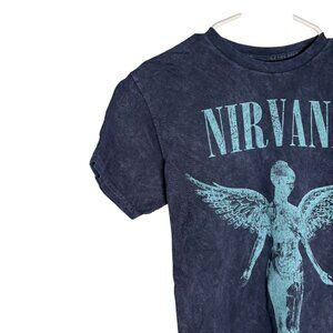 Nirvana Band Tee Retro Oversized Distressed Dark Blue Unisex Size S NWOT