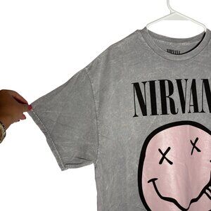 Nirvana Band Tee Smiley Grunge Retro Oversized Distressed Gray Size 1X NWOT