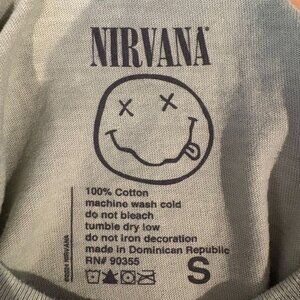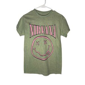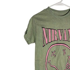 Nirvana Band Tee Smiley Grunge Retro Oversized Distressed Green Size S NWOT