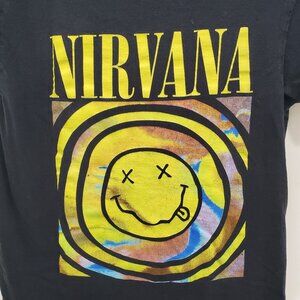 Nirvana Black Tie Dye Smiley Face Logo Swirl Graphic Tee Unisex Adult Size S