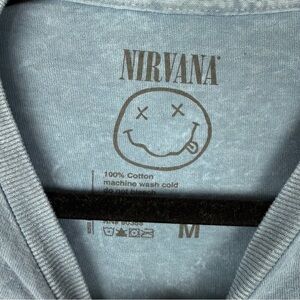 Classic Nirvana tee with iconic smiley face. Soft blue fabric. Bold graphic design. Gently preloved in great condition.