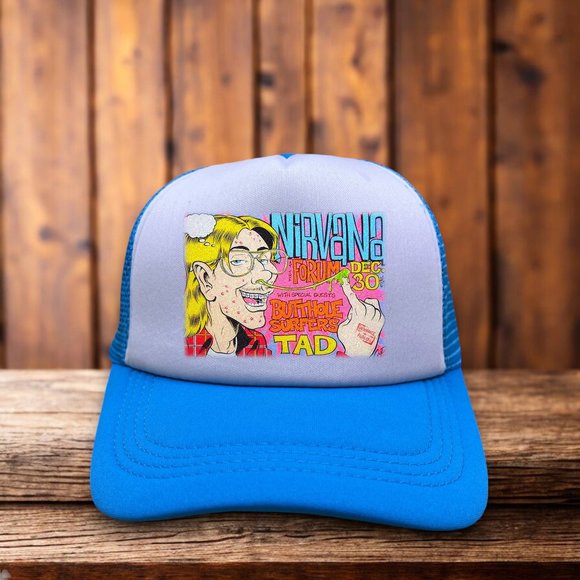 Nirvana Butthole Surfers Mens Trucker Hat Blue Snapback 90s Tour Poster Cap