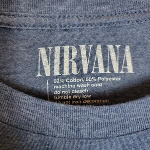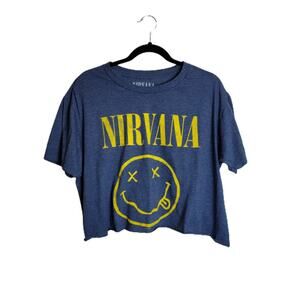 Blue and yellow smiley face Nirvana band tee cotton poly blend cut off crop in size large.