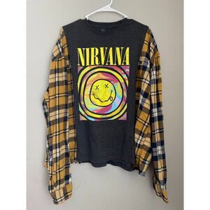 Nirvana Flannel Tshirt, Reworked Flannel, Upcycled, Refashioned