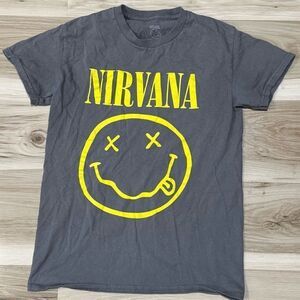 Nirvana Gray Yellow Logo Short Sleeve Tee Shirt Women’s Small