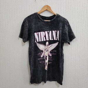 Nirvana In Utero Graphic Band Tee Black Acid Wash Size Medium Women's
