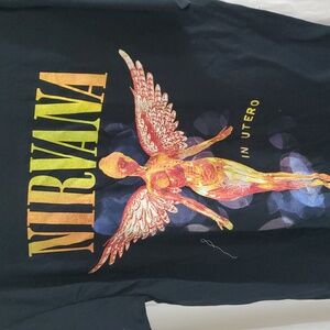 Nirvana In Utero Graphic print '93 concert Band Tee Grunge Rock black Tee Shirt size large brand new