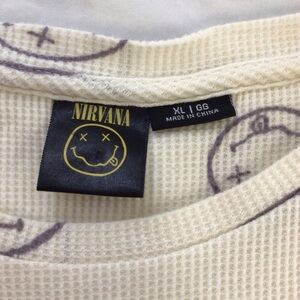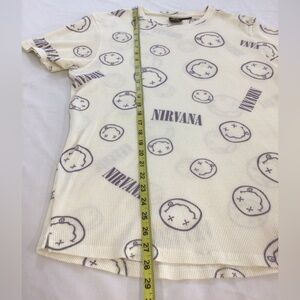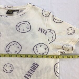 This Nirvana waffle tee features a fun graphic design on a soft cream fabric. Perfect for casual wear.