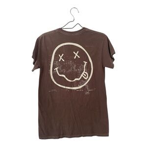 Color: Moss brown with a white Nirvana logo on the front a smiley face graphic on the back