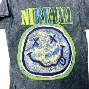 Nirvana NWOT Unisex Smile Gray Crew Neck Short Sleeve Casual T-Shirt Small