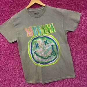 Nirvana Nevermind Smiley Face Mineral Wash Logo Tshirt size Large