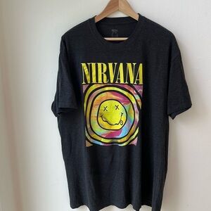 Nirvana Official Rainbow Smiley Face Retro Reprint Tee Size Large