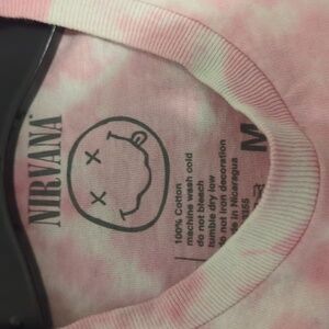 This stylish Nirvana kids t-shirt features a vibrant pink tie-dye design. Perfect for young fans, it combines comfort with iconic style.