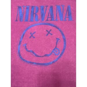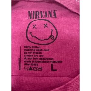Nirvana Pink Women's Short Sleeve Nevermind Smiley Grunge Band T-Shirt Sz L