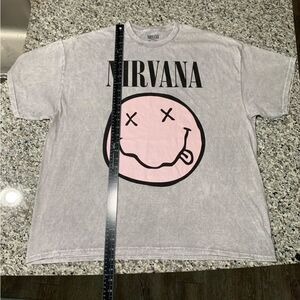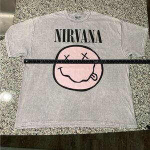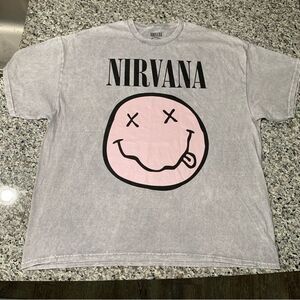 Nirvana Smiley Face Thrashed Distressed Vintage Wash Grunge T-Shirt Unisex 2X.