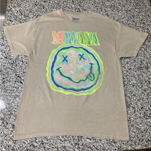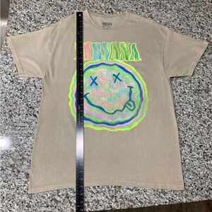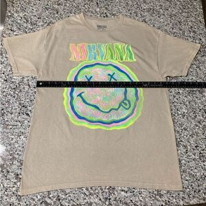 Nirvana Smiley Face Thrashed Vintage Wash Grunge T-Shirt Large.