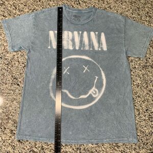 Nirvana Smile Face Thrashed Distressed Vintage Wash Grunge Unisex Large.