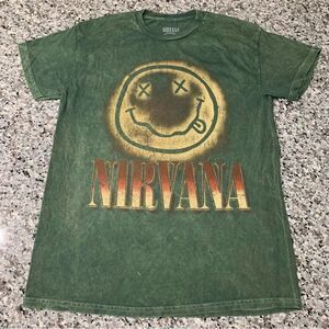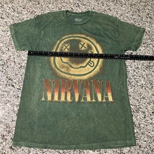 Nirvana Smiley Face Thrashed Distressed Vintage Wash Grunge T-Shirt Unisex Medium.