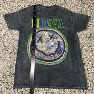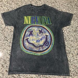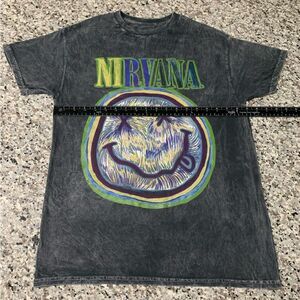 Nirvana Smiley Face Thrashed Distressed Vintage Wash Grunge T-Shirt Unisex Medium.