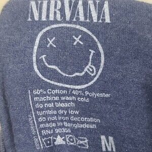 Nirvana shirt, short sleeves, crewneck, Nirvana & smiley face/emoji graphic on the front, size M.
