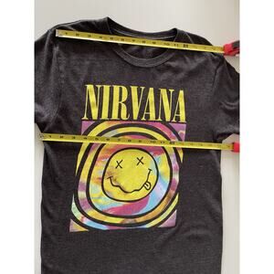 Nirvana Smiley Face 90’s Music Band Tie Dye Logo Graphic Tee Grey T-shirt, XS