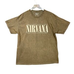 Nirvana T Shirt Mens XL Olive Green Band Tee Smiley Face Graphic Print Retro Grunge NWOT. New without tags never worn condition. Some color variation due to factory mineral wash. 100% Cotton. Machine washable. See pictures for measurements. Ships quickly from a smoke free home.