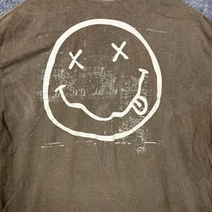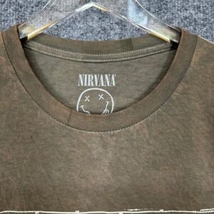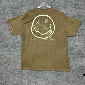 Keywords: Nirvana, T-Shirt, Band Tee, Graphic Tee, Olive Green, Smiley Face, Grunge, Vintage, Mens XL, Music Tee, Concert Tee, 90s, Retro