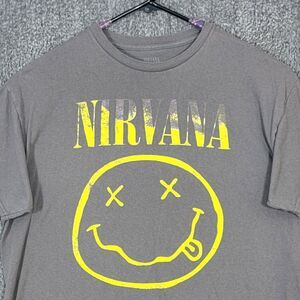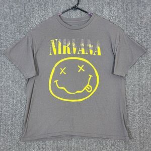 Nirvana T-Shirt Mens XL Gray Nevermind Smiley Face Short Sleeve Crewneck