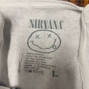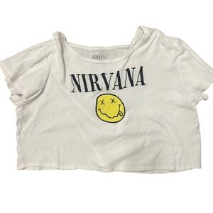 Nirvana White Embroidered Graphic Women's Crop Top Size L Grunge Rock Boxy 90s