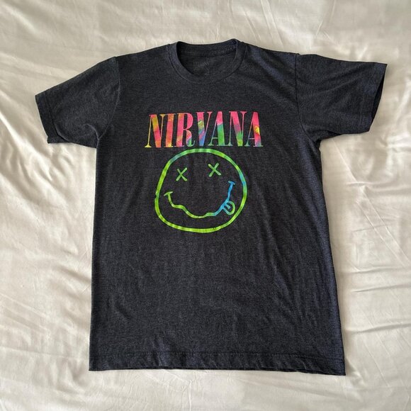 Nirvana black with colorful logo. Womens cotton t-shirt. Size L. Measurements in photos. Thanks for looking!! #nirvana #band #grunge