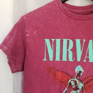Nirvana Womens T-Shirt Sz S Genuine Merch Utero Angel Distressed Acid Wash Pink