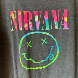 Nirvana graphic band tee short sleeve top tshirt rainbow charcoal smiley face