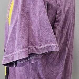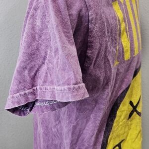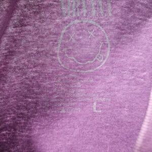 This Nirvana purple smiley men's large t-shirt is a stylish and comfortable addition to any music fan's wardrobe. With a regular fit and short sleeves, this shirt is perfect for casual wear. The vibrant purple color and iconic smiley design represent the 90s alternative rock band Nirvana, making it a great choice for those who appreciate music history and band memorabilia. Whether you're a die-hard fan or just love a good music-themed shirt, this t-shirt is sure to make a statement.