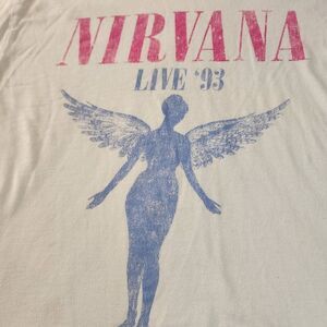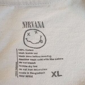 Nirvana 2023 White Cropped Tshirt With Graphics Size XL, hem is rolled, could have been cut by previous owner, shirt is in great shape, no stains