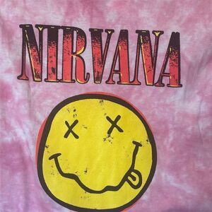 Nirvana Pink Tie Dye Smiley Face Graphic T-Shirt Unisex Size S