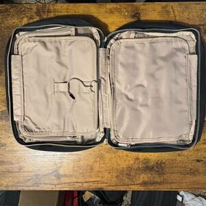 The Nishel Travel Toiletry Bag is designed for organizing and carrying personal care items during travel. It is suitable for vacations, business trips, or weekend getaways. The bag is new with tags. Keywords: Nishel, travel bag, toiletry organizer, personal care, vacation, business trip, weekend getaway, travel accessory, new with tags, travel essentials, toiletry storage, compact design, durable material, portable, unisex.