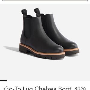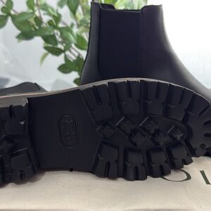 Stylish black leather Chelsea boots with a rugged sole. Perfect for any occasion.