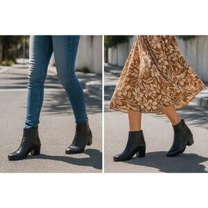 Sleek, versatile, and built for all-day wear. These Nisolo Dari Commuter Boots feature premium black leather with a back zip closure and comfortable block heel. Timeless style that pairs effortlessly with denim, dresses, or workwear.