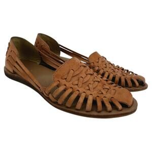 Nisolo Huarache Sandals Slip On Closed Toe Woven Leather Boho Almond Tan 9