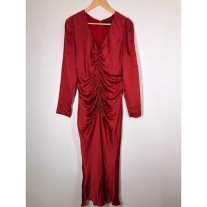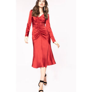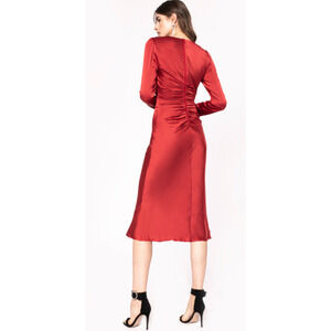 Nissa Satin Ruched Dress Rose Red Midi US 10 UK 14