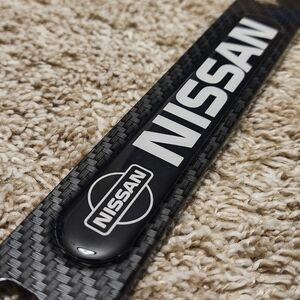 Set of two carbon fiber license plate frames with Nissan logo. Includes mounting hardware.