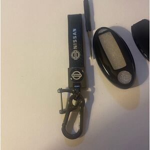 Nissan Logo key fob Keychain in Black Leather and Key Fob Cover in Black NWT