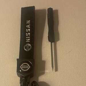 Nissan Logo Key Fob Keychain in Black Leather NWT