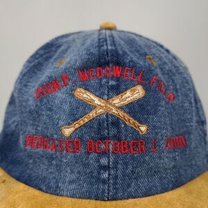 Nissin Men's John P. McDowell Field Dedication Hat Blue Tan Vintage 2000 Y2K