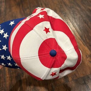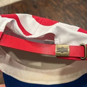 Nissin USA American Flag Hat Embroidered Stars Stripes Strapback Cap 90s VTG in amazing condition leather strap with copper hardware
