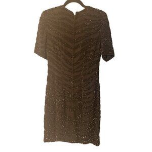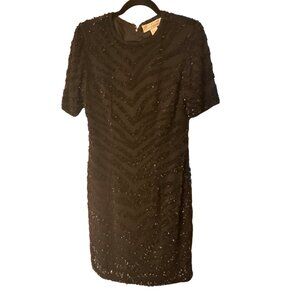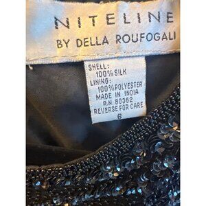 NiteLine By Della Roufogali Black Sequin Silk Dress Size 6 Evening Cocktail