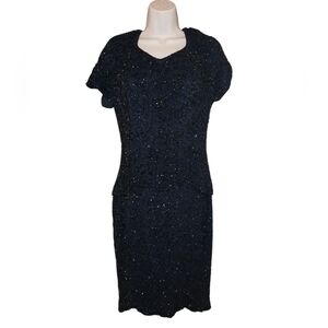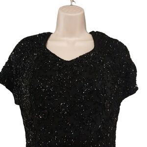 Niteline Silk Beaded Dress Short Black Evening Gown Size 10