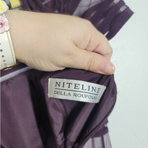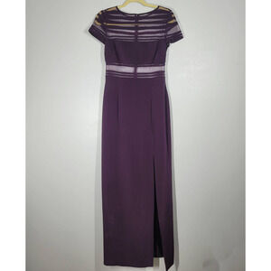 Niteline Della Roufogali Evening Dress Size 8 Sheer Mesh Thigh High Slit Purple
